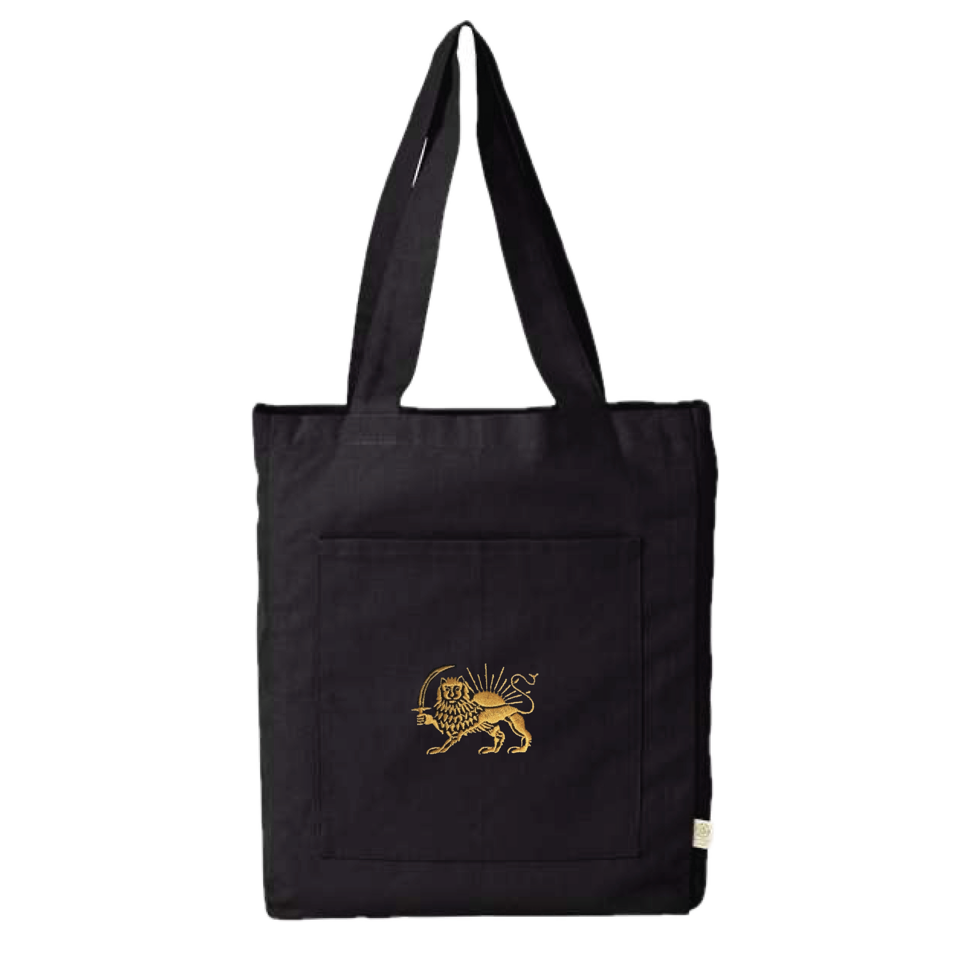Embodying the timeless Lion and Sun, this eco-friendly tote allows you to carry a symbol of the Iranian spirit and show your support everywhere you go. As functional as it is purposeful, it has a heavy-duty 6-inch gusset designed to carry your heaviest essentials with ease, all while being ethically crafted in a solar-powered, Fair Trade certified facility.